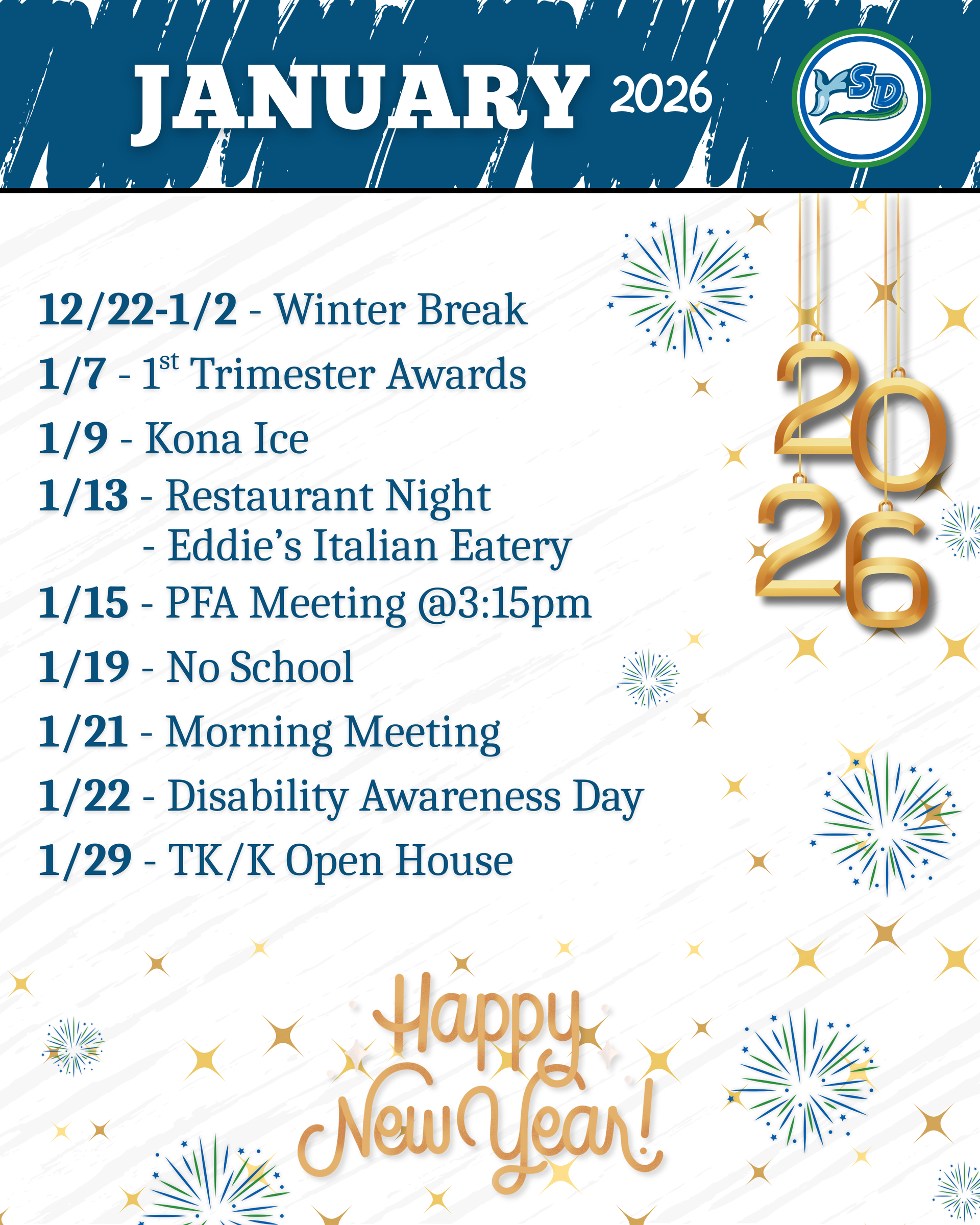 Happy New Year! We hope you had a wonderful Winter Break relaxing and enjoying everything that the holiday season had to offer. With your partnership, 2026 promises to be an incredible year, full of opportunities and achievements. We’re excited to welcome students back to school on Monday, January 5. To ensure a smooth transition, please make sure your child arrives on time to help them settle back into their routine. Please take a moment to read the newsletter below that was sent on Dec 21 with a few added updates.